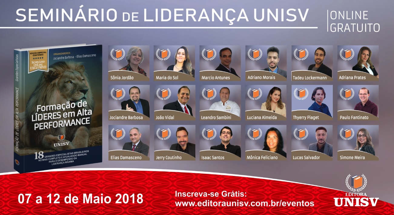 Empresas e organizações investem dinheiro e tempo todos os anos na busca por líderes que consigam não só inspirar pessoas para que produzam mais e melhor, como também encontrar oportunidades em meio aos problemas corporativos da atualidade. Os 18 formadores de líderes do Brasil escolhidos pela editora UNISV (Universidade do Sucesso em Vendas) para o livro “Formação de líderes em alta performance” promoverão, entre os dias 9 e 12 de maio, um evento online e gratuito para abordagem de temas fundamentais para o desenvolvimento de uma liderança capaz de transformar fracassos em oportunidades, equipes em seguidores e pessoas comuns em talentos de valor.